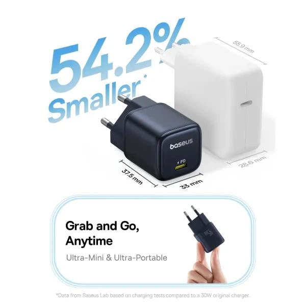 Серія PicoGo створена як портативне рішення для активного способу життя: зарядний блок легкий, займає мінімум місця та підходить як універсальний адаптер для щоденних поїздок. Пристрій забезпечує інтелектуальний розподіл енергії та має вбудовані механізми захисту від перегріву, перенапруги та перевантаження, що підвищує безпеку використання. Важливо, що модель має лише один USB-C порт, тому заряджання здійснюється по черзі для кожного пристрою.