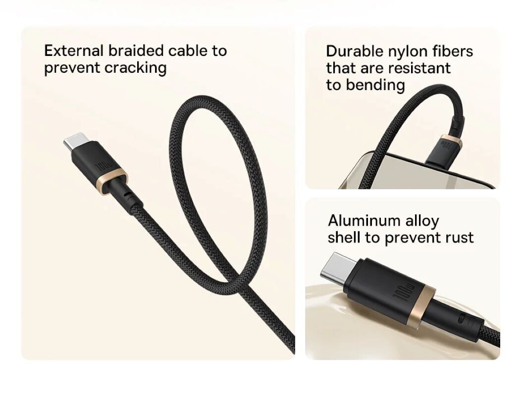 Кабель Baseus Dura Series Type-C to Type-C 100W (1 м) — це практичне рішення для користувачів, яким потрібна стабільна швидка зарядка, надійність і комфорт у щоденному використанні. Аксесуар поєднує високу потужність, зносостійкі матеріали та універсальну сумісність із сучасними гаджетами.